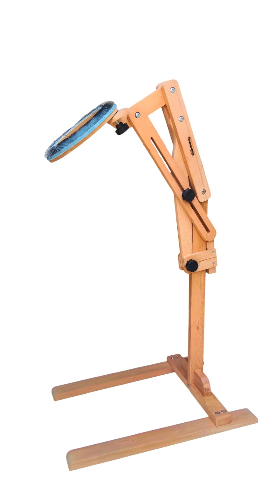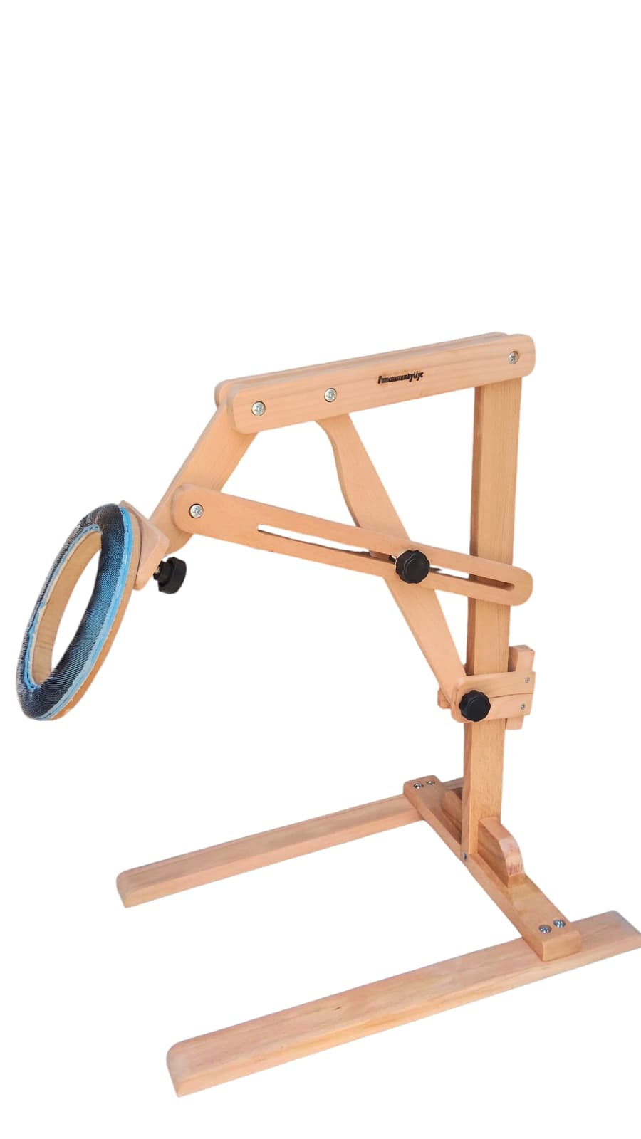 Kendi özel tasarımımız Yuvarlak Kasnak Tutucu Standımızı fırınlanmış 1.sınıf kayın kerestesinden ürettik. Hem masa üstünde hem yerde kullanılabilecek özelliktedir.